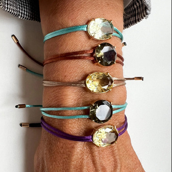 תליון זירקון צבעוני צבע חבל ארוגים צמיד ידידות מתכווננת צמיד אביזר מתנה