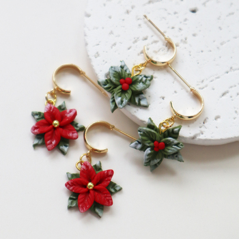 2025 עגילי ירידה לחג המולד עלה עם נשים בנות פרח אדום אופנה פשוט תליון עגילי חג מולד מתנה תכשיטי אביזר